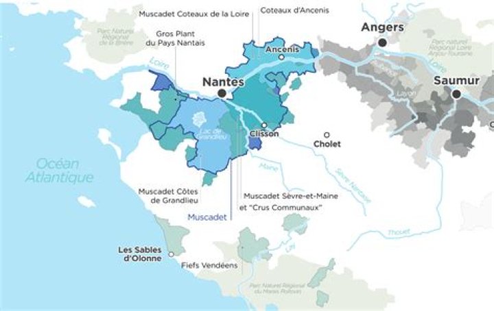 Muscadet is a dry white wine from the Loire Valley region in France and is named for the area the wine is grown. The area is in the most westerly region of the Loire, on the Atlantic coast of Brittany, and is the largest white wine appellation in France.