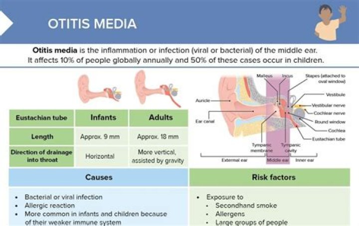 Age: This is the most important risk factor for developing otitis media. Most commonly, it occurs between the ages of 6 and 18 months. The younger the child, the more severe the disease and greater the risk of complications.