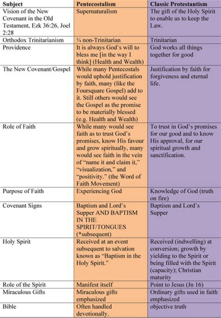 Pentecostals hold to the inspiration, authority, inerrancy and infallibility. Presbyterians believe there is one God who exists in three persons. The Father, Son, and Holy Spirit are each fully divine. Pentecostals believe in the Trinity and hold that each member is fully divine.