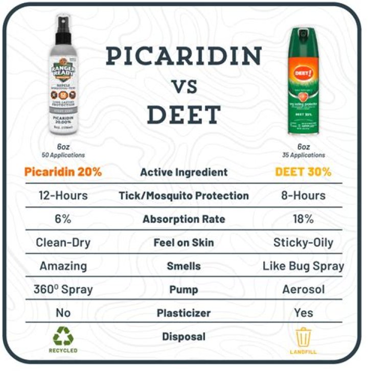 "Picaridin is a little more effective than DEET and seems to keep mosquitoes at a greater distance," he says. When people use DEET, mosquitoes may land on them but not bite. When they use a product containing picaridin, mosquitoes are less likely to even land.