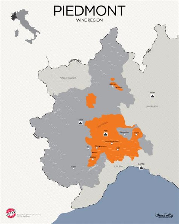 Piemonte is known for its wines and fall truffles, mountains with ski resorts in the west and north, and the city of Turin.