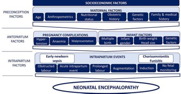 Many factors predispose to the onset of Neonatal Encephalopathy either alone or in a combination including (A) Preconception Risk Factors, (B) Maternal Antepartum/intrapartum comorbidities or events, (C) Placental pathology, (D) Hypoxia-ischaemia, (E) Perinatal infection, (F) Neonatal stroke or thrombophilia, (G) ...