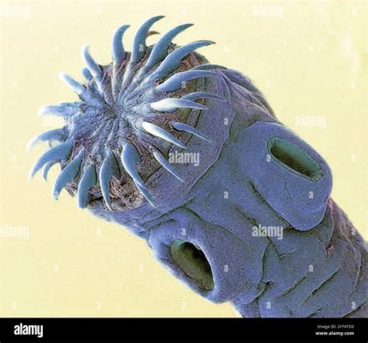 Tapeworms are hermaphroditic; each segment has two sets of male and female reproductive organs, which will fill the segment with fertile eggs as the segment is pushed back from the neck.