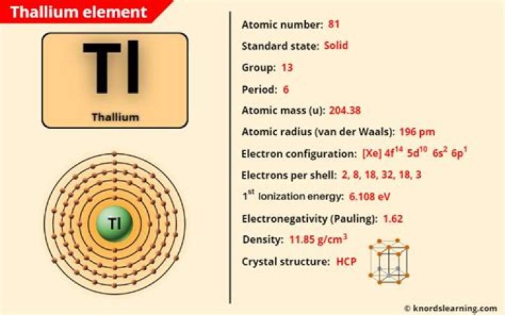 Answer: Thallium is typical of the Group 13 elements in having an s2p1outer electron configuration. ... In water the colourless, more stable thallous ion, Tl+, resembles the heavier alkali metal ions and silver; the compounds of thallium in its +3 state are easily reduced to compounds of themetal in its +1 state.