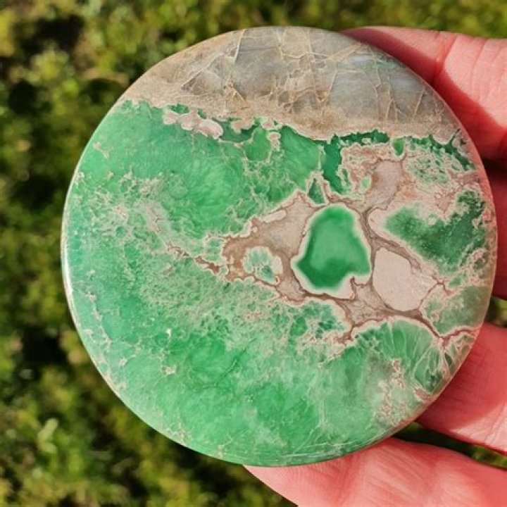 Variscite is a hydrated aluminium phosphate mineral (AlPO4•2H2O). ... Variscite often contains white veins of the calcium aluminium phosphate mineral crandallite. Variscite is most often used as a semi-precious stone, and is popular for cabochons, jewellery, carvings and ornamental use.