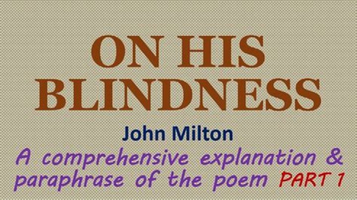"On His Blindness" refers to the struggles John Milton had after he lost his sight. The speaker of the poem feels he's lost his purpose, that he cannot work as well for God anymore, and he asks God for guidance as to what he should do.