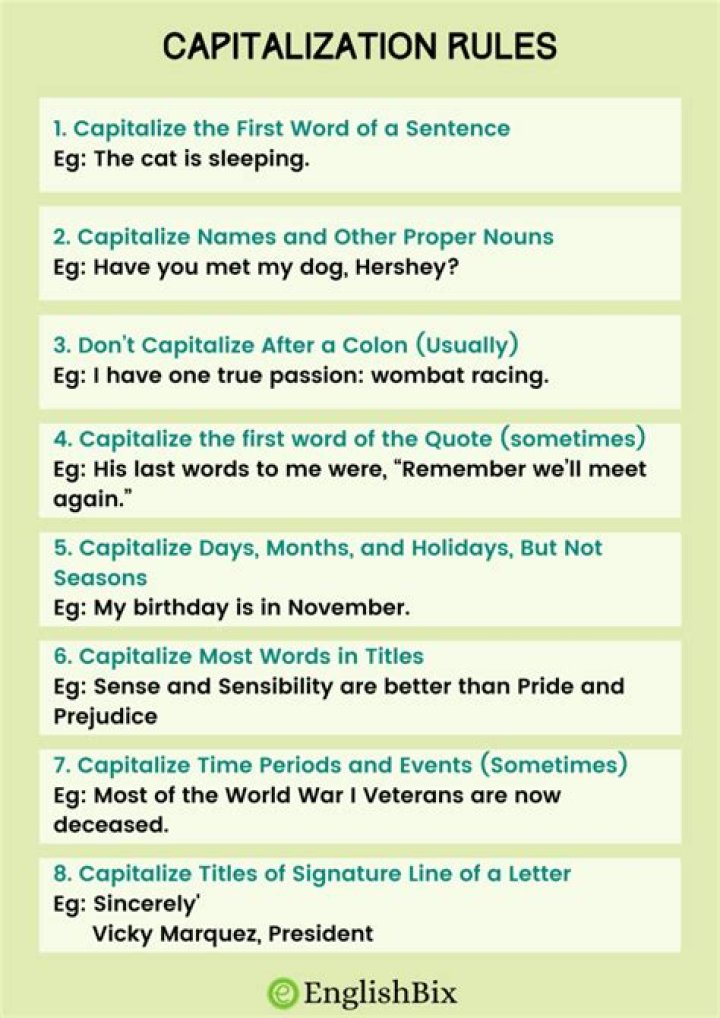 Thus, here are 10 capitalization rules you should know for a well written write-up:- Capitalize the first word of every sentence.