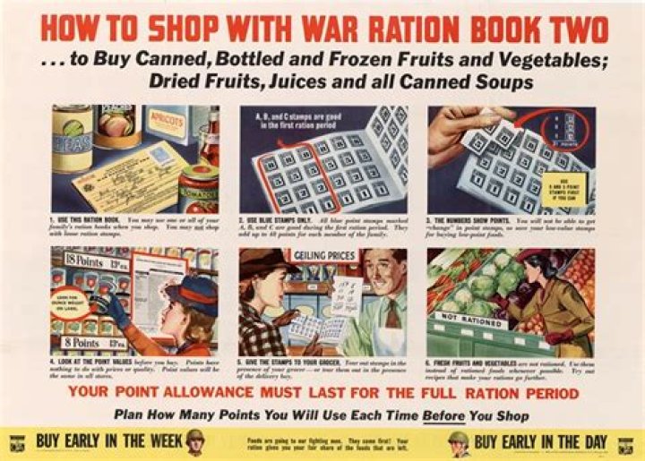 Ration books worked on a coupon system, so people could only purchase their entitlement and no more. A typical person's weekly ration allowed them 1 egg, 2 ounces each of tea and butter, an ounce of cheese, eight ounces of sugar, four ounces of bacon and four ounces of margarine.