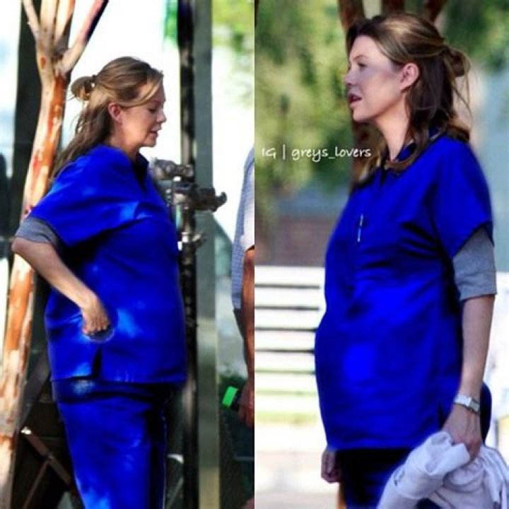 During early season six, Ellen Pompeo was pregnant and showing, so most shots of her are above the chest or her belly is covered with something. She was given four weeks off and the writers allowed her to return for only short times in the following weeks.