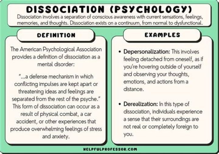Dissociation is a break in how your mind handles information. You may feel disconnected from your thoughts, feelings, memories, and surroundings. It can affect your sense of identity and your perception of time. The symptoms often go away on their own.