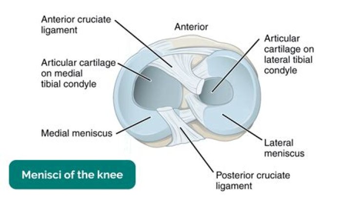 Menisci rests between the thigh bone femur and the tibia and there are two knee joint ligaments. They are a type of cartilage in the joint. The rubbery texture of the menisci is due to their fibrocartilagenous structure. Their shape is maintained by the collagens within them.