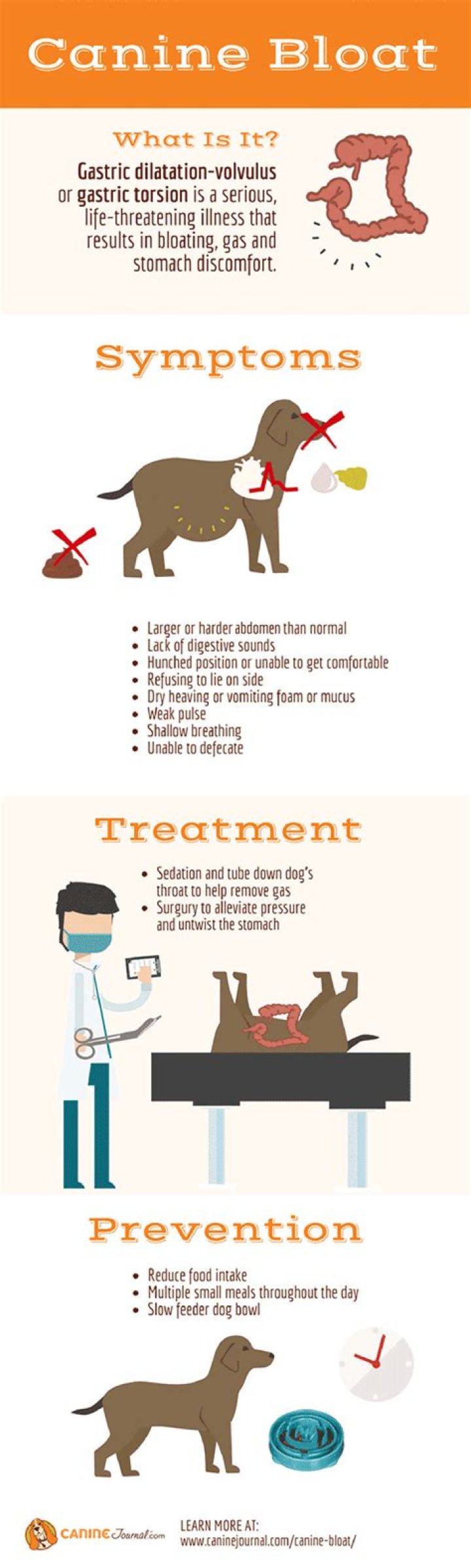 Hot food, cold food, big kibble, little kibble, too much food, too much exercise, too many carbohydrates, and stress have all been touted as causes of bloat, but remain unsubstantiated. Scientific studies have repeatedly shown that breed is a risk factor for developing bloat.
