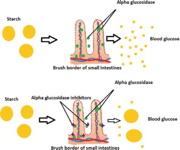 Alpha-glucosidase inhibitors work by competitive and reversible inhibition of these intestinal enzymes. They slow the digestion of carbohydrates and delay glucose absorption. This results in a smaller and slower rise in blood glucose levels following meals, and effectively throughout the day.
