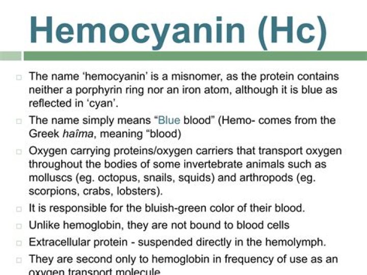Hemoglobin, an iron-containing protein found in the blood of other animals—including humans—serves the same oxygen-transporting function but turns blood red. Both hemoglobin and hemocyanin release their bound oxygen when they reach tissues that need it.