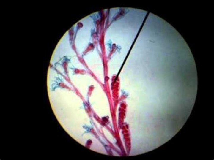 The hydranths are more numerous and constitute the feeding zooids. Each of them resembles a Hydra in appearance, having about twenty solid tentacles. A hydranth, is encased and protected in a transparent vase-like hydro-theca. It captures minute prey by using its tentacles which contain batteries of nematocysts.
