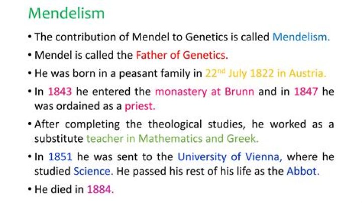 Mendelian inheritance, also called Mendelism, the principles of heredity formulated by Austrian-born botanist, teacher, and Augustinian prelate Gregor Mendel | Biography, Experiments, & Facts | Britannica