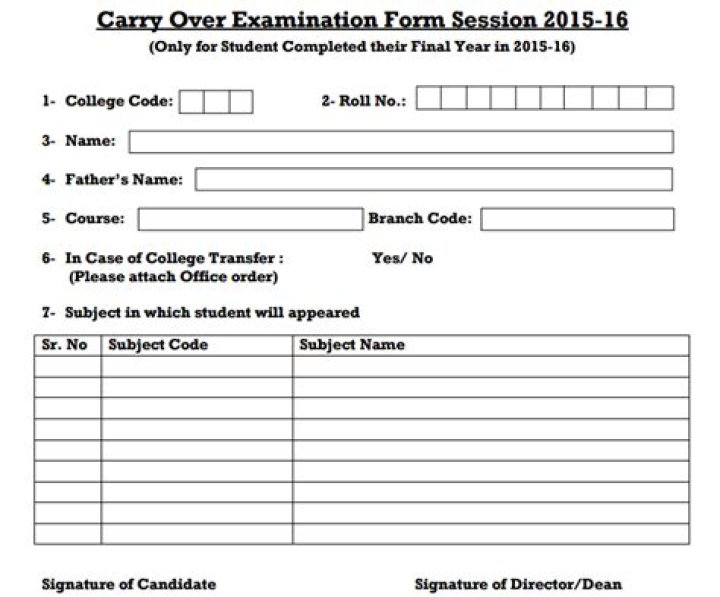 The carryover examination is the process that university conduct to give another chance to the students so that they can clear the examination this time. The carryover examinations are conducted by the university after releasing the result of regular courses.