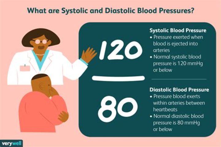 The first number, called systolic blood pressure, measures the pressure in your arteries when your heart beats. The second number, called diastolic blood pressure, measures the pressure in your arteries when your heart rests between beats.