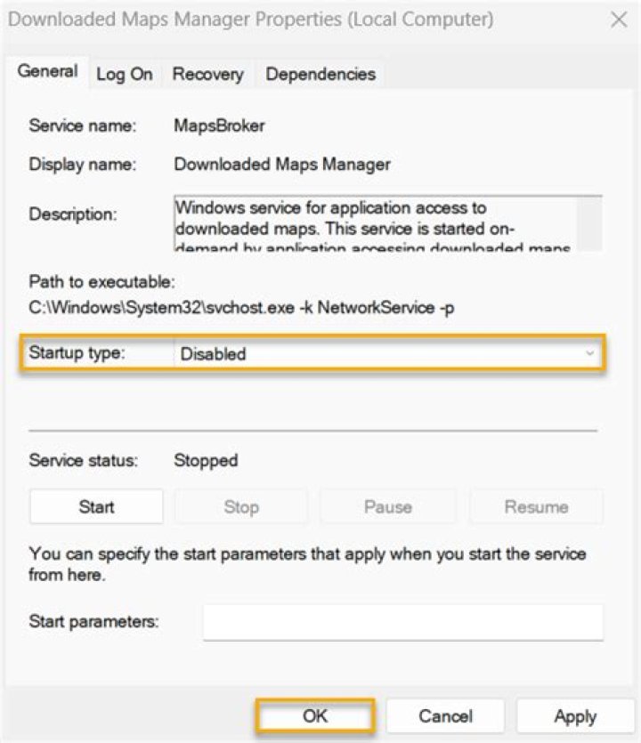 Maps. Some map apps, such as Windows Maps, depend on the Downloaded Maps Manager service, also known as MapsBroker. If you download offline maps, this service runs in the background to keep them up to date. Because it only runs occasionally, it consumes very few system resources.