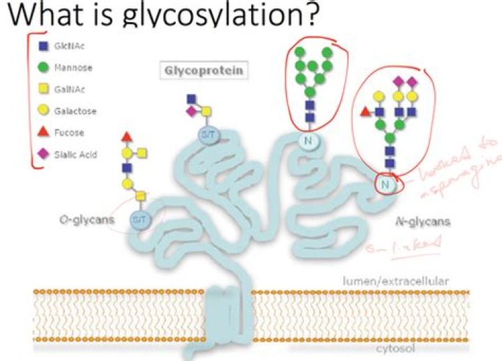 The addition of a carbohydrate moiety to a protein molecule is referred to as protein glycosylation. It is a common post translational modification for protein molecules involved in cell membrane formation. ... It contains glucose, mannose and n-acetylglucosamine molecules.