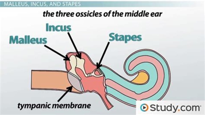 The middle ear contains three tiny bones: Hammer (malleus) — attached to the eardrum. Anvil (incus) — in the middle of the chain of bones. Stirrup (Stapes - Wikipedia