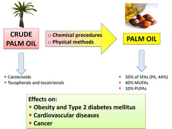Palmitic acid, a saturated fatty acid, is the principal constituent of refined palm oil. In the last few decades, controversial studies have reported potential unhealthy effects of palm oil due to the high palmitic acid content.