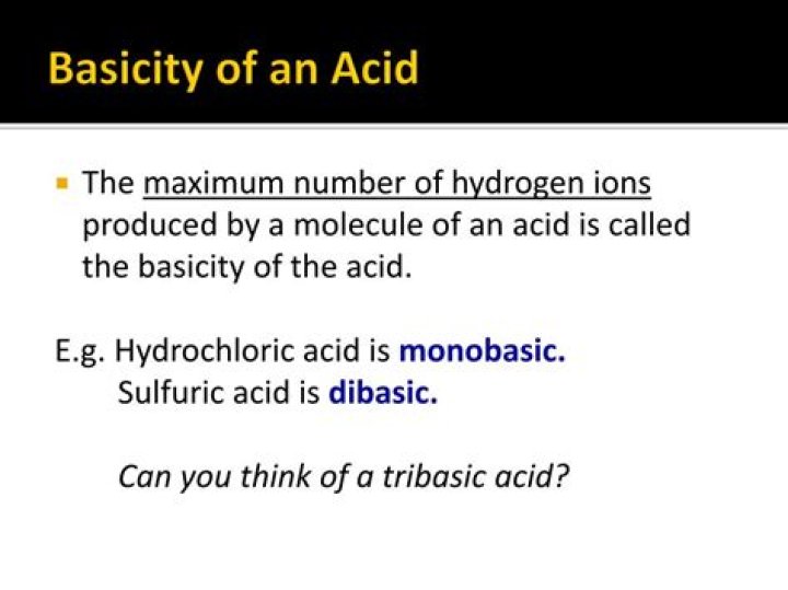 So, basicity of an acid is defined as the number of hydrogen ions which can be produced from one molecule of the acids on complete dissociation while acidity of a base is the number of hydroxyl ions which can be produced from one molecule of the base on complete dissociation.