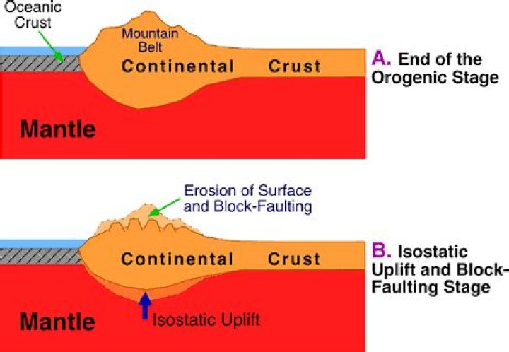 Orogeny, or mountain building, is the result of collision between two landmasses. This may occur via collision of continental crust (continent-continent collision) or when oceanic and continental crust collide (ocean-continent collision).