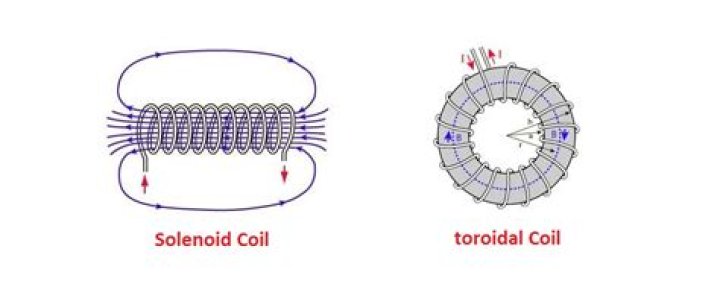 A toroid has a similar shape when compared to a solenoid, but is bent into a ring structure. This doughnut-shaped structure is wound with copper wire.