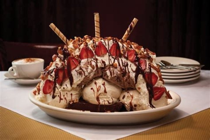 The Titanic at Carmine's is a gigantic sundae made with six whopping scoops of ice cream, whipped cream, caramelized fruit, hot fudge sauce and an entire Chocolate Torta.