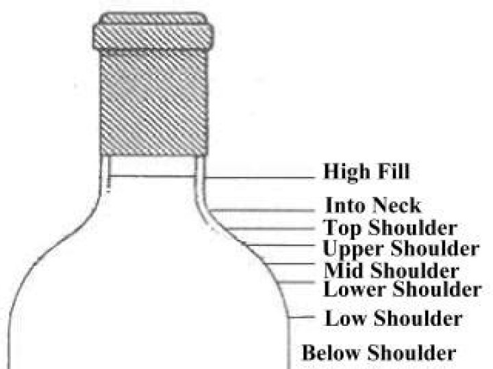 An excellent level for any wine 10 years or older. ... A very good level in any wine 15 years or older. Very high shoulder. Indicates a very slight natural reduction of wine due to evaporation through the cork and capsule. A good level in any wine 15 years or older.