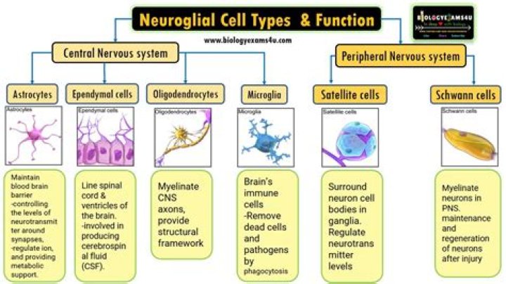 - Oligodendrocytes – myelinate axons in the central nervous system and provide an overall structural framework.