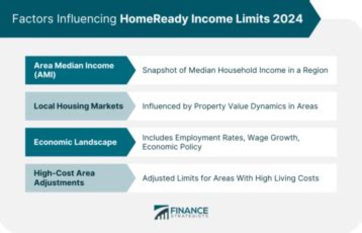 Income limits: Borrower income must be below 100 percent of the area median income (AMI), with some exceptions based on the property's location. There is no income limit on properties in low-income census tracts. Credit: HomeReady allows for nontraditional credit. Credit scores as low as 620 are permitted.