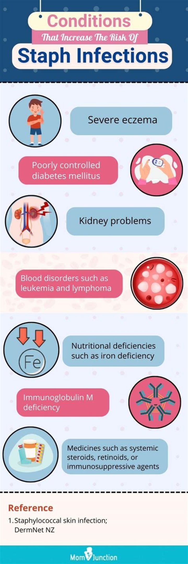 Staph infections are caused by staphylococcus bacteria, types of germs commonly found on the skin or in the nose of even healthy individuals. Most of the time, these bacteria cause no problems or result in relatively minor skin infections.