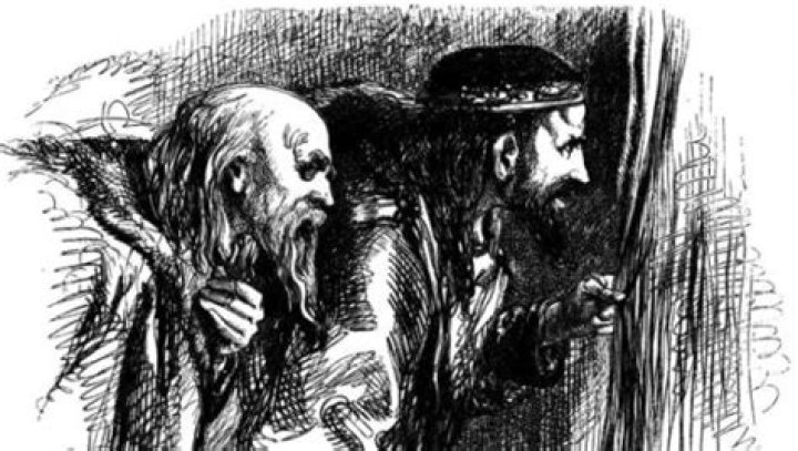 Polonius spying on Laertes