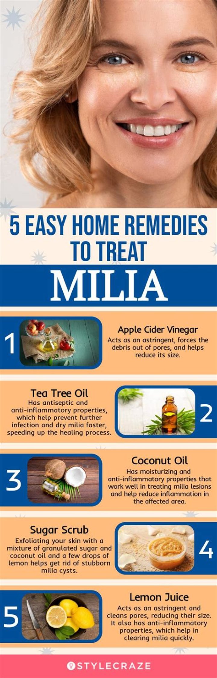 Imbued with astringent and anti-inflammatory properties, lemon juice reduces the size of skin pores and helps in drying the milia spots.