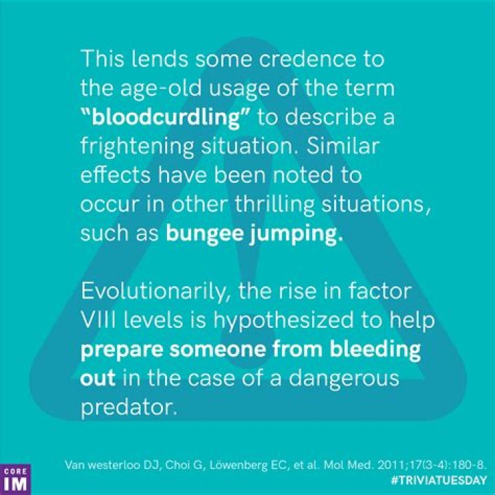 The word 'bloodcurdling' is often associated with horror movies, but a new study has shown it is legitimately associated with an increase in a blood clotting protein called Factor VIII. Watching horror movies really can thicken your blood!