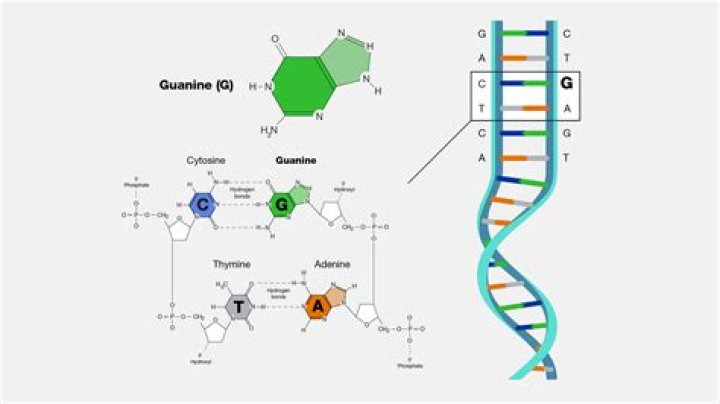 Guanine (G) is one of four chemical bases in DNA, with the other three being adenine (A), cytosine (C), and thymine (T). Within the DNA molecule, guanine bases located on one strand form chemical bonds with cytosine bases on the opposite strand.