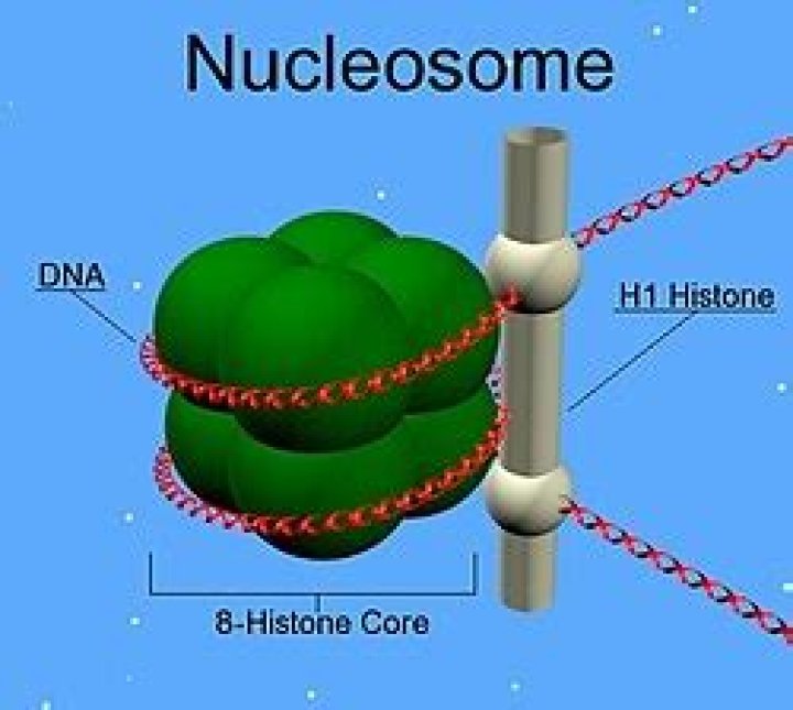 Unlike the other histones, H1 does not make up the nucleosome "bead". Instead, it sits on top of the structure, keeping in place the DNA that has wrapped around the nucleosome. H1 is present in half the amount of the other four histones, which contribute two molecules to each nucleosome bead.
