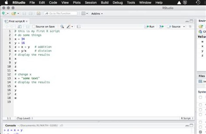 To start writing a new R script in RStudio, click File – New File – R Script. Shortcut! To create a new script in R, you can also use the command–shift–N shortcut on Mac.