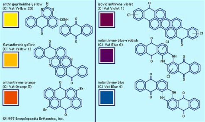 Anthraquinone itself is colourless, but red to blue dyes are obtained by introducing electron donor groups such as hydroxy or amino groups in the 1-, 4-, 5- or 8-position. Anthraquinone dyestuffs are structurally related to indigo dyestuffs and are classified together with these in the group of carbonyl dyes.
