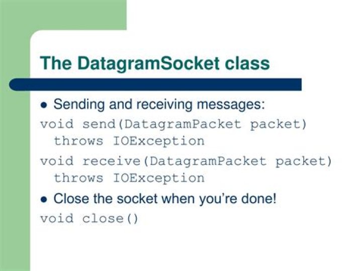 A datagram socket is the sending or receiving point for a packet delivery service. Each packet sent or received on a datagram socket is individually addressed and routed. ... In order to receive broadcast packets a DatagramSocket should be bound to the wildcard address.