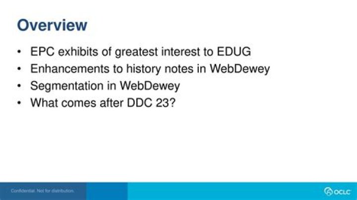 3.2 The DDC is published by OCLC, Inc. The DDC is accessed through WebDewey, a frequently updated subscription service maintained by OCLC.