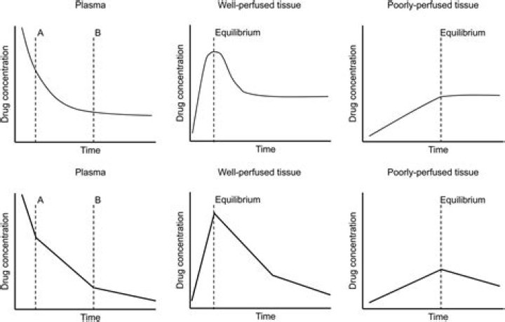 Organs like the liver and the heart are highly perfused with blood. By contrast, the bone and the adipose tissues experience less blood perfusion. Therefore, drugs are likely to distribute more rapidly to tissues/organs that are more richly perfused with blood.