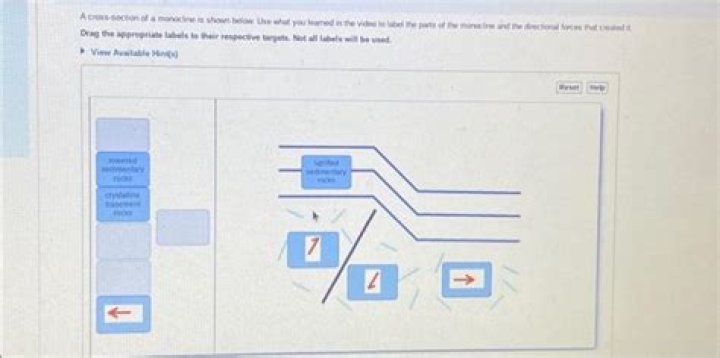 A monocline is a simple bend in the rock layers so that they are no longer horizontal. Anticlines are folded rocks that arch upward and dip away from the center of the fold. The oldest rocks are at the center of an anticline and the youngest are draped over them.
