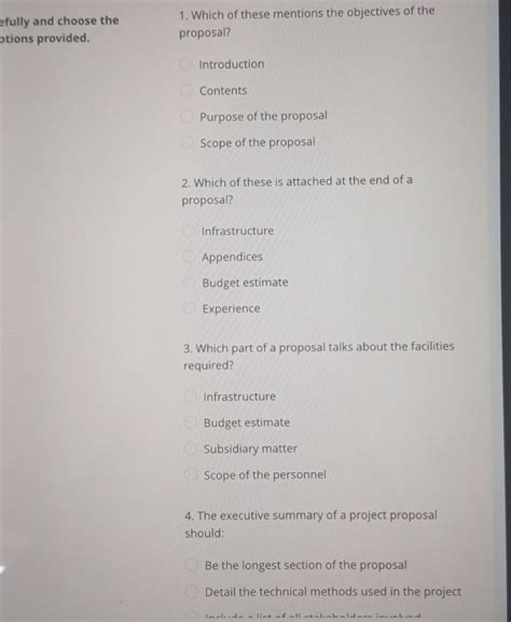 7. Which of these mentions the objectives of the proposal? Explanation: The purpose of the proposal mention clearly the objectives of the proposal.