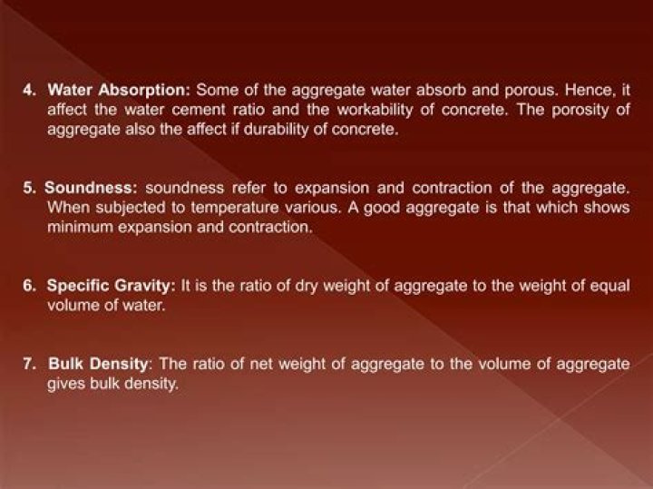 - A good aggregate should be durable to resist atmospheric variation.
