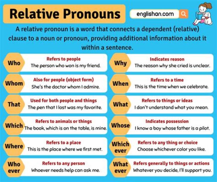 What are the 7 relative pronouns?