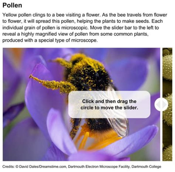 pollen looks like a fine yellow or white dust, but when magnified many thousands of times in a Scanning Electron Microscope (SEM) each plant pollen species reveals a unique set of characteristics. They can be distinguished by shape, size and ornamentation.