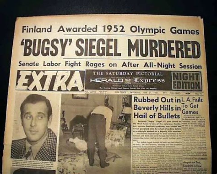 Benjamin “Bugsy” Siegel, the man who brought organized crime to the West Coast, is shot and killed at his mistress Virginia Hill's home in Beverly Hills, California. Siegel had been talking to his associate Allen Smiley when three bullets were fired through the window and into his head, killing him instantly.